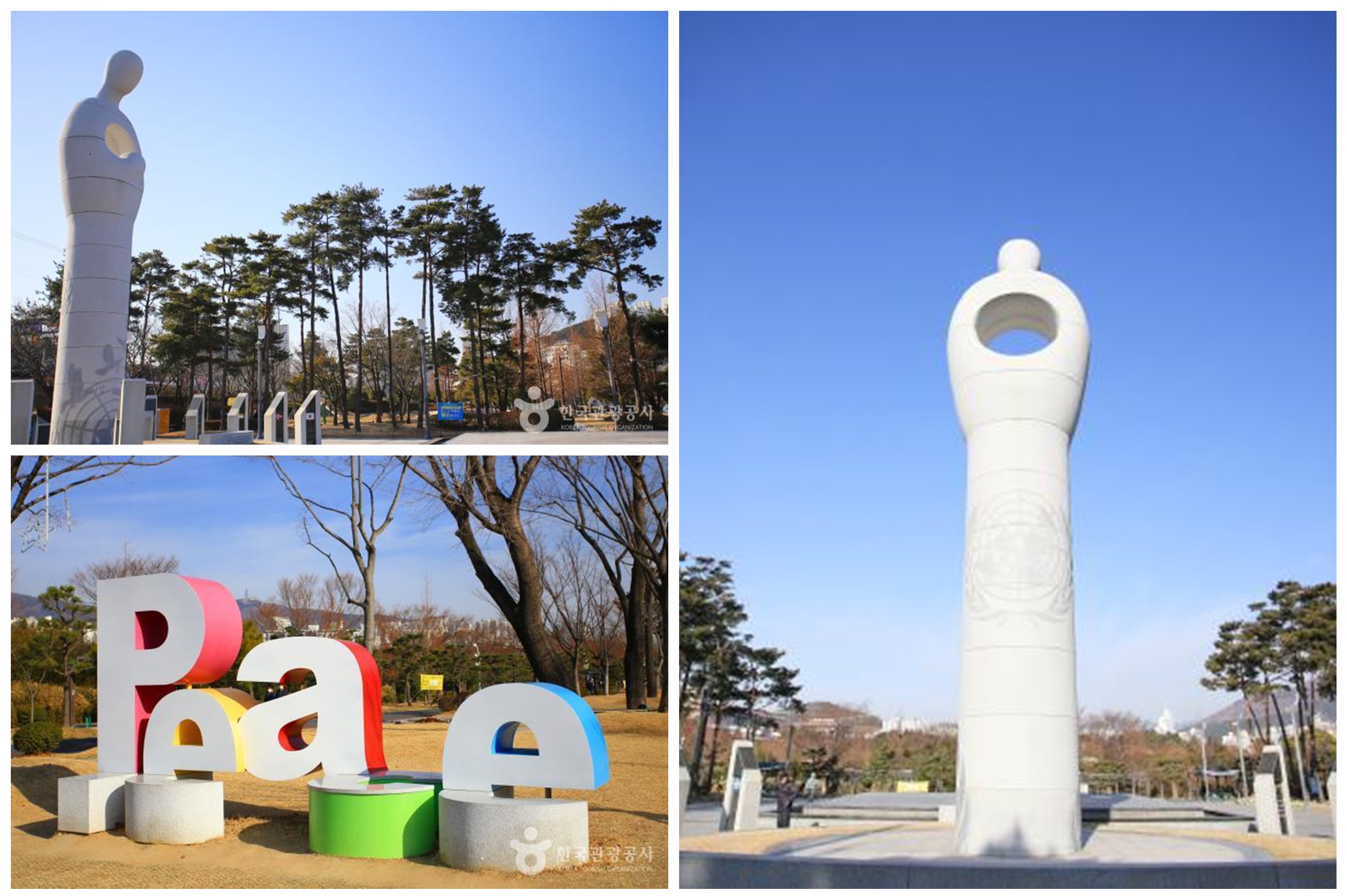 남구 유엔평화문화특구에 자리한 평화공원은 현지인이 즐겨 찾는 가족 나들이 명소이다. 년 아시아태평양경제협력체(APEC) 정상회의 기념으로 세계에서 유일한 유엔 기념 묘지인 재한유엔기념공원(국가등록문화재) 옆에 조성했다. 공원은 잔디광장과 생태연못, 평화의 광장 등으로 구성된다. 지역민과 작가들이 평화의 염원을 담은 '평화의 문', 평화로운 마음과 몸짓으로 어울려 춤추는 형상을 표현한 '평화의 춤' 등 다양한 조형물이 있다. 그중 Peace라는 알파벳 조형물이 인기다.