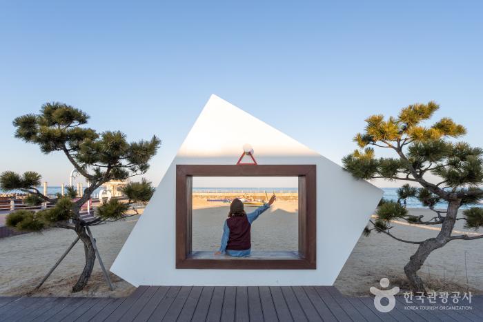 마지막으로 향할 곳은 강문해변이다. 경포해변과 안목해변 사이에 있어 상대적으로 조용하다. 드라마 '그녀는 예뻤다' 촬영지로, 캔버스를 프레임으로 한 포토 존을 비롯해 반지를 형상화 벤치 등 톡톡 튀는 조형물이 기다린다.