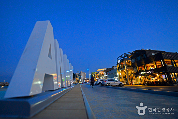 안목해변을 따라 크로 작은 카페들이 늘어선 커피명소로 어느 카페를 가든 탁 트인 바다 풍경을 감상하며 커피를 마실 수 있다.