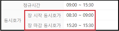 보통 주식거래는 장시작시간과 장마감 직전에 몰리는 경향이 있다. 만약 밤사이에 어떤 엄청난 일이 터지면 다음 날 장시작 전에 주문이 폭주하게 되고 엄청난 패닉에 빠지게 된다. 그래서 동시호가 제도를 만들어서 정규장 가격에 곧바로 영향이 안 미치게 완충작용을 하는 것이다.