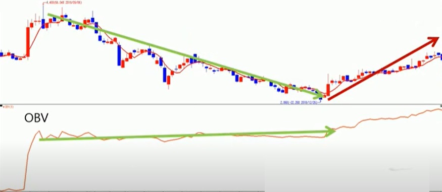 OBV를 활용하는 목적은 분석하고자 하는 종목이 매집 단계에 있는지 아니면 분산 단계에 있는지를 알아보는 데 있다.