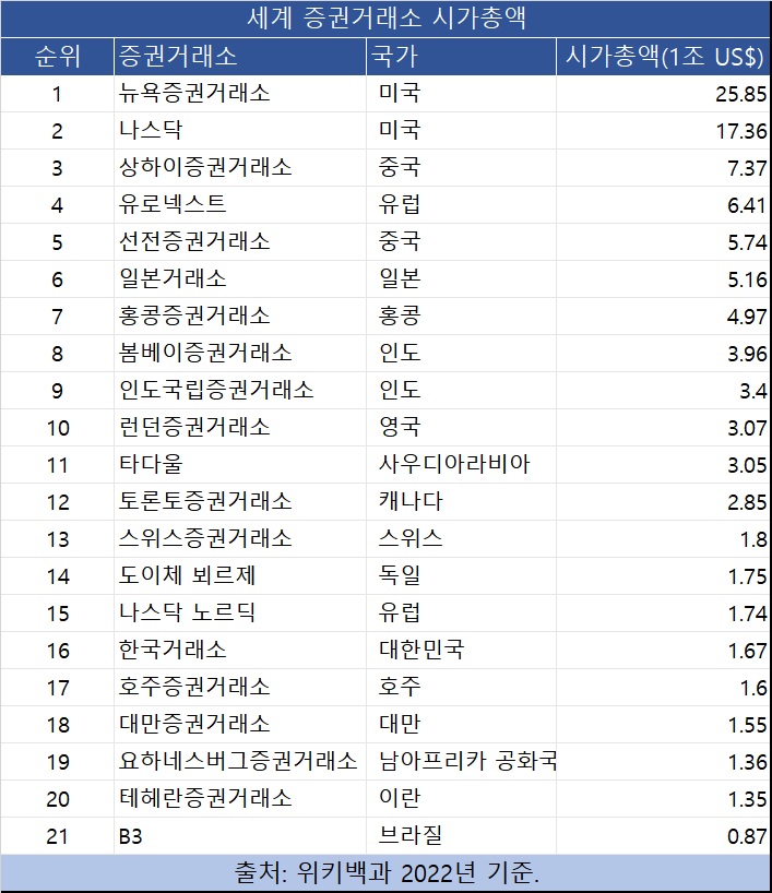 ▷ 1개 국가의 사가총액 : 상장된 모든 기업의 시가총액의 합계