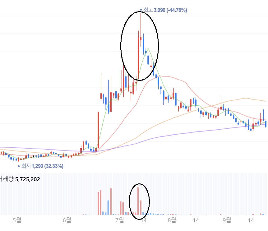 거래량이 평균 거래량(20일 정도)의 10배 이상 폭증하는 경우는 당일 주가 변동폭이 상당히 커진다.