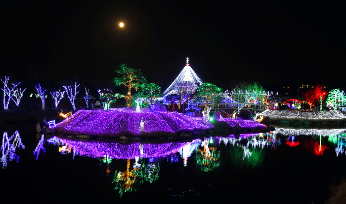 태안 빛축제는 2023년 내내 네이처월드에서 진행된다. 신비한 우주를 형상화한 소망터널, 사랑의 하트터널 등 곳곳이 포토존이다. 특히 LED소나무를 배경으로 한 연못 위 조형물이 인증샷 명소라고 한다.