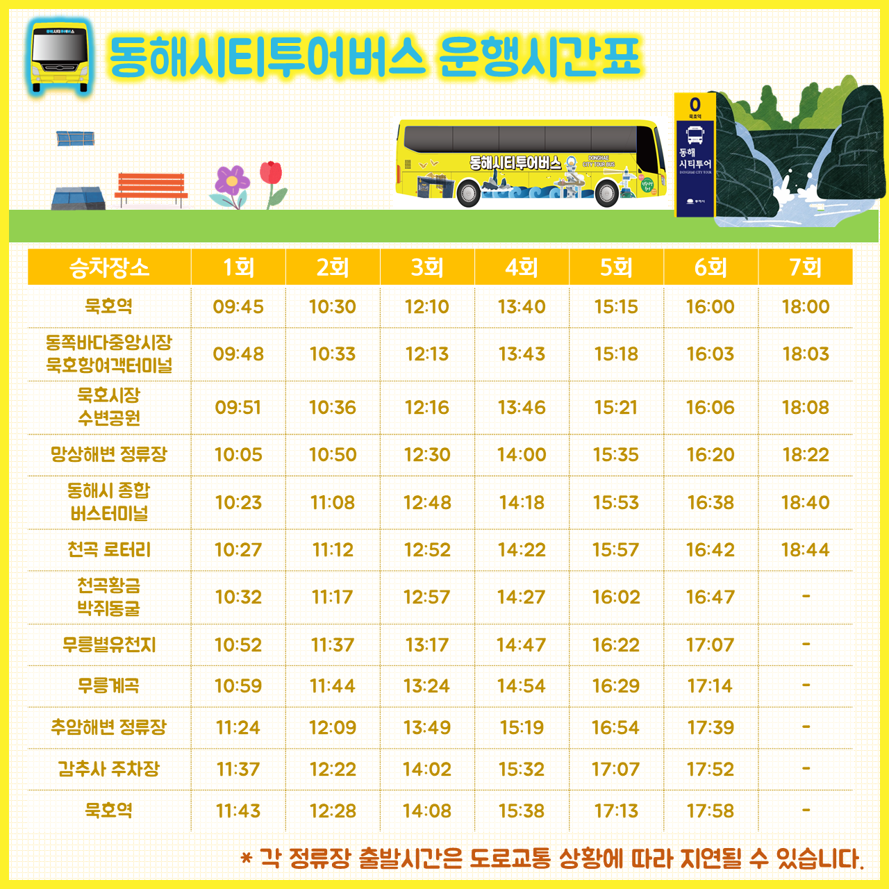 2023년 동해시티투어버스는 12월 25일(월)까지만 운행한다.