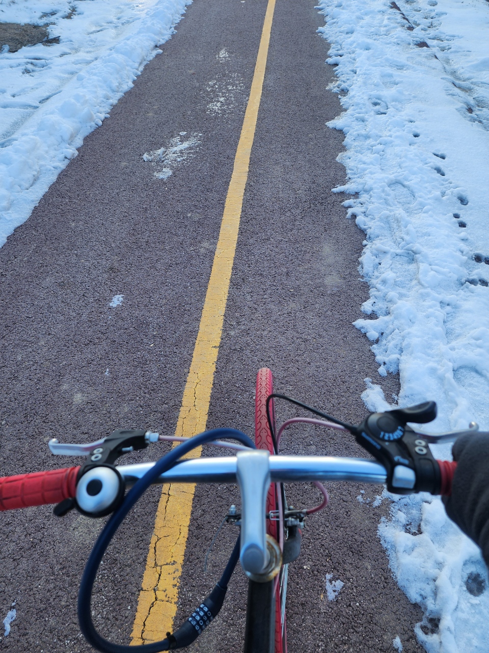 오늘아침엔 날씨가 많이 추워 분명 길이 얼어 있을 것 같아 버스를 타고 출근하려고 했는데 타이밍이 맞지 않아 그냥 자전거를 타고 갔다. 얼음이 군데군데 있었지만 생각했던 것보단 길 상태가 나쁘지 않았다. 얼음이 많은 길은 내려서 걸어가기도 하고 조심조심 가느라 평소보다 10분 더 걸렸다.