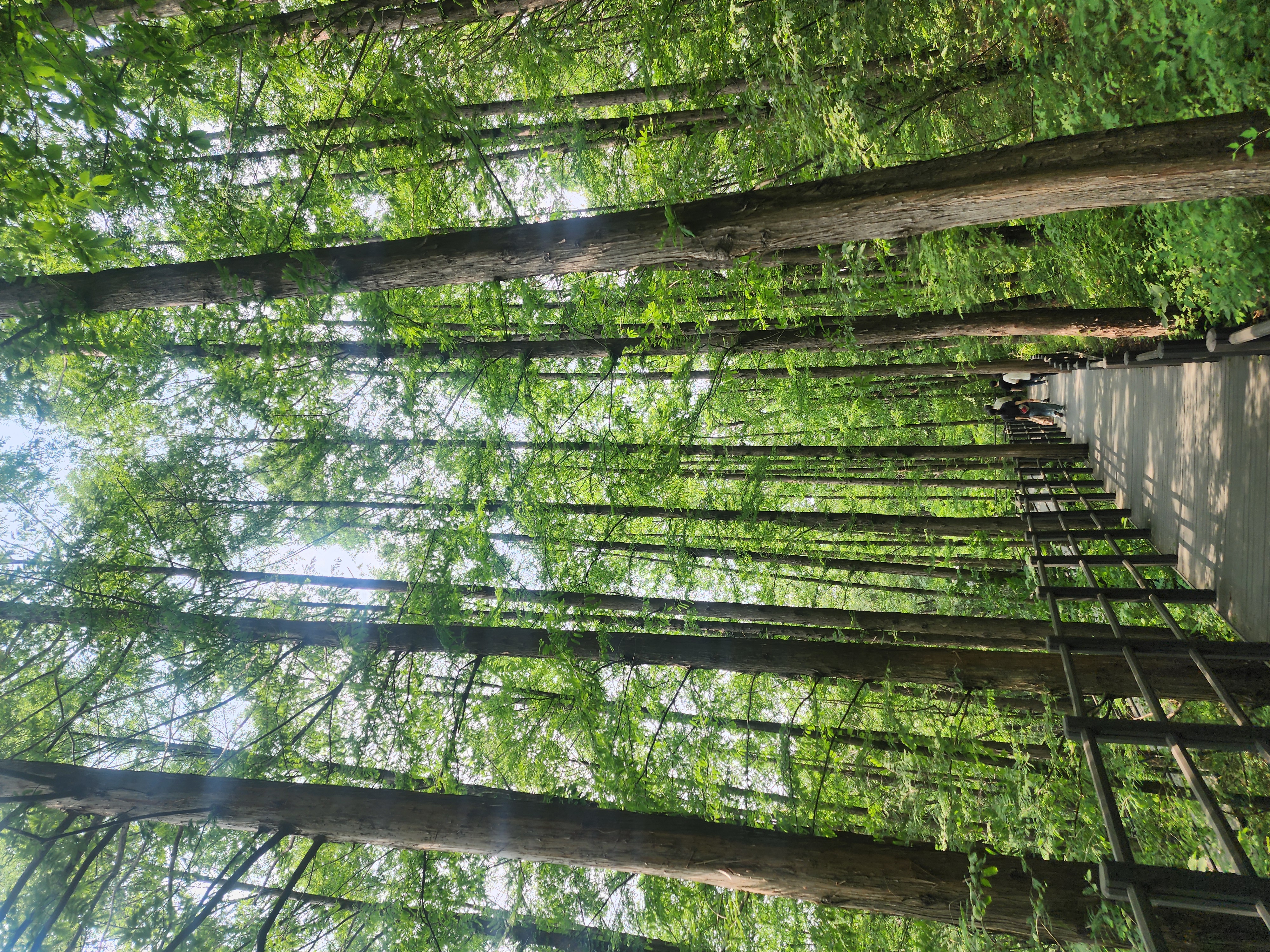 데크길을 따라 조금씩 올라갈 때마다 도심 속 소음은 사라지고 더욱 울창해진 숲이 나타나 여기가 강원도 인가하는 착각이 들었다. 도심 속에 이런 숲이 있다니 신비롭기까지 했다. 특히나 메타세쿼이아 숲에 도착했을 땐 감탄이 절로 나왔다. 한참을 바라보며 숲을 감상했다. 살랑살랑 부는 바람에 시원하게 쭉 뻗은 나무들이 흔들리며 삐그덕 소리가 난다. 한참을 앉아 있어도 지루하지 않았다. 고요하며 마음이 편안해졌다. 자연을 흠뻑 즐기고 있는데 아이가 그만 가자며 초치는 소리를 한다. 그래.. 가자