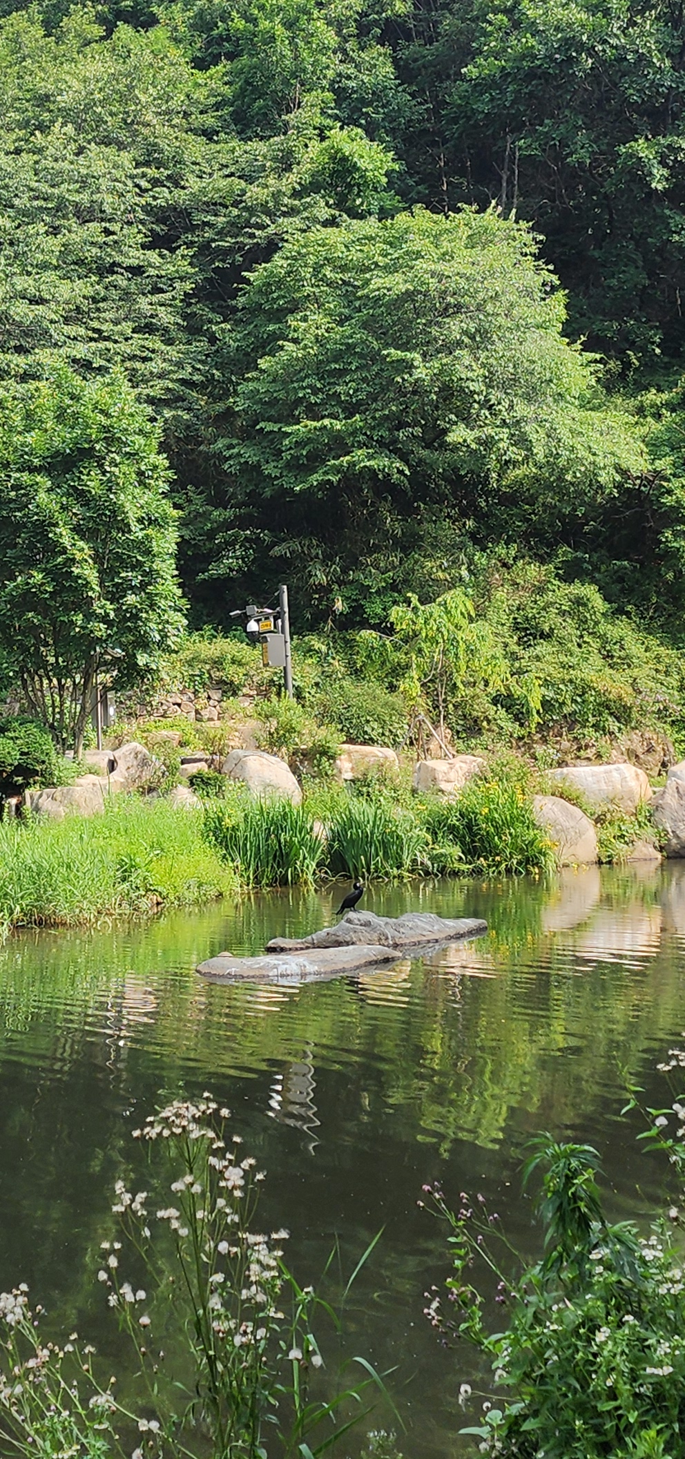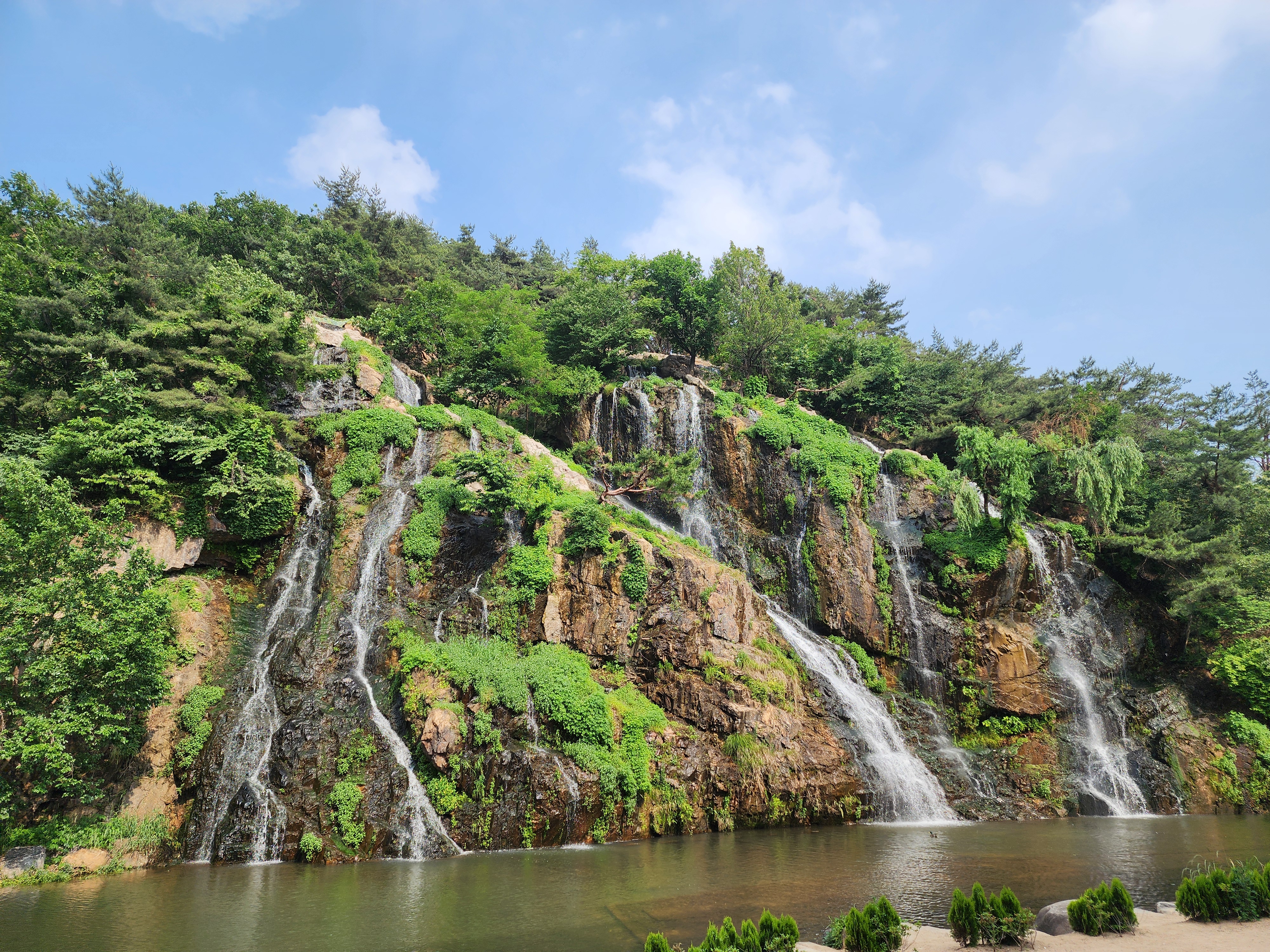 마지막 코스인 홍제천 인공폭포 방향으로 하산했다. 홍제천을 따라 조금 걷다 보니 시원한 물줄기 소리가 나며 인공폭포가 나타났다. 생각보다 규모가 크고 잘 만들어져 있었다. 주말이라 굉장히 많은 사람들이 있었는데 폭포옆 바위 위에 가마우지 새가 인간을 감상하듯 쳐다보고 있었다. 관광명소로 소문이 났는지 외국인들이 꽤 많았다. 시원 달콤한 음료와 함께 거대한 절벽사이로 떨어지는 폭포를 바라보며 일정을 마무리했다.