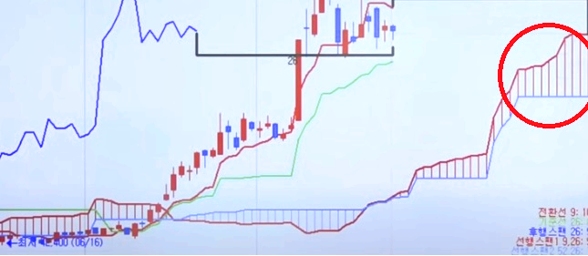 선행스팬 1과 2는 26일을 앞당겨서 만들었기 때문에 같은 위치에서 움직인다.