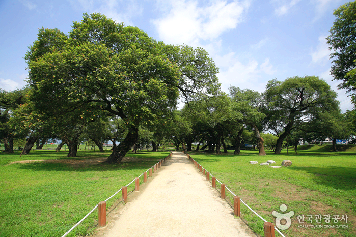 성밖숲 수해를 예방하기 위해 조성된 수해방비림으로 수령이 약 300~500년 정도로 추정되는 천연기념품 왕버들나무가 4~5월이면 연둣빛으로 물들이고 8월이면 야생화 맥문동의 보랏빛으로 장관을 이루는 등 생태자원이 풍부한 곳이다. 높이가 평균 12.7m에 이르는 노거수들이 그림자를 드리워 서늘한 그늘을 만든다.