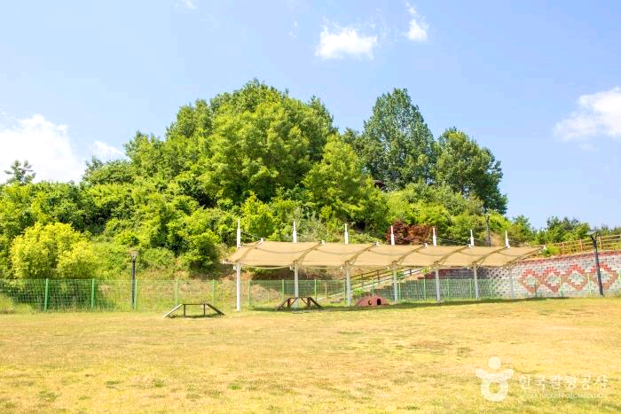 놀이턱 워낙 넓어 도시공원에서는 쉽지 않은 프리스비나 공을 던져 물고 오게 하는 훈련 등을 하기도 좋다. 놀이터에 몇 가지 훈련 기구가 있다. 여러 마리가 한 공간에 있어도 전혀 불편하지 않고, 오히려 강아지들이 함께 어울리며 사회성이 생기기도 한다.
